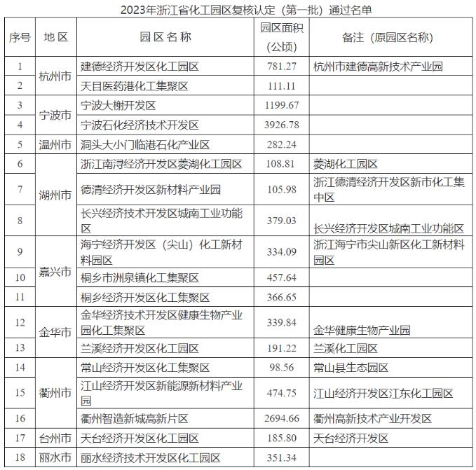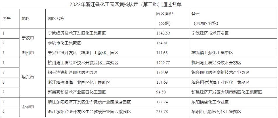 on august 28, 2023, six departments including the zhejiang provincial department of economy and information technology issued a notice on the list of those who passed the review and certification of chemical industry parks in zhejiang province in 2023 (the third batch). after certification, the ningbo economic and technological development zone chemical industry cluster area, etc. 9 garden areas meet the chemical industry park review and certification requirements.