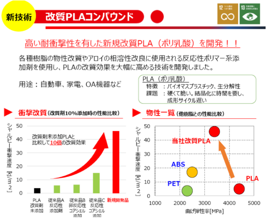 pla, a biomass plastic derived from plants, is hard and brittle, takes time to crystallize, has a long molding cycle, and has poor productivity. sumika