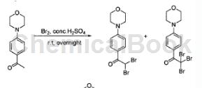 the specific steps are as follows: cool the solution of 4-morpholinopropiophenone (5g, 24.36mmol) in concentrated sulfuric acid (30ml) to 0°c. bromine (1.28 ml, 25.09 mmol) was slowly added to the solution. the resulting mixture was gradually warmed to ambient temperature and stirred for a further 6 hours. pour the reaction mixture into ice water. the precipitate formed was filtered, washed with water and air dried to give the product as a green solid. lc-ms 363.9 (mh)+ (78%) and 442.8 (mh)+ (22%).