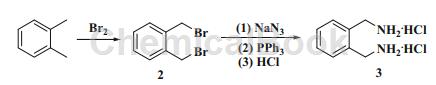 o-xylylenediamine dihydrochloride is the hydrochloride form of o-xylylenediamine and can be prepared from o-xylene through a two-step reaction.