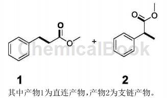 method 1. in a 50 ml polytetrafluoro-lined reactor, add 4 ml of methanol, 0.3 mmol styrene, and 0.1 g of 0.15 wt% ru/ceo2 catalyst, and add a magnetic sub, filled with 0.5mpa co, sealed, stirred and reacted at 180°c for 12 hours. after the reaction, the product was characterized by mass spectrometry and quantified by gas chromatography. the product is as follows: