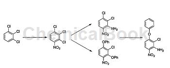 acetofen is mainly obtained from 1,2,3-trichlorobenzene through a three-step reaction, namely nitration, amination and etherification.