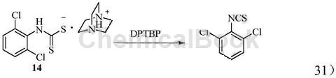 method 1: add 2.00mmol 2,6-dichlorophenyldithiocarboxylic acid triethylammonium salt into a 50ml eggplant-shaped flask, add 8.00ml acetonitrile and 4.0mmol triethylamine in sequence, and then stir at 0°c. during the process, 1.00 mmol of bistribromo1,3-bispyridinium propane was added in batches. after the addition was completed, it was kept at 0°c for 30 minutes, and then raised to room temperature to stir the reaction. during the reaction, tlc (thin layer chromatography, developing agent: petroleum ether) to detect that the reaction was complete. after 16 hours of reaction, tlc detection showed that the reaction was complete, and then suction filtration was performed. the obtained filter cake was recovered (recovery method, please refer to the recovery of bistribromo1,3-dipyridinium base propane). example), the obtained filtrate was concentrated, and the concentrated filtrate was subjected to column chromatography to obtain 2,6-dichlorophenyl isothiocyanate (0.129g, 29.5%) as a yellow solid, m.p.=40-41°c.