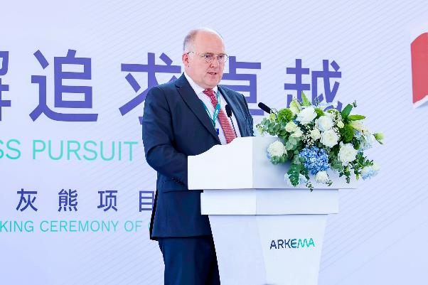 mr. romuald de haut de sigy, global president of arkema functional additives division, delivered a speech at the project groundbreaking ceremony