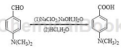 dissolve 149g (1mol) of p-dimethylaminobenzaldehyde in 600ml toluene, keep the system temperature at 5~10℃, add 6.5gkh2po4 and 100ml water, and add naclo2 dropwise ( 1.35mol, 122.2g) and 1000ml of aqueous solution, add it dropwise in 1.5h, then keep it warm for 3h, stir and raise the temperature to 25~30℃,