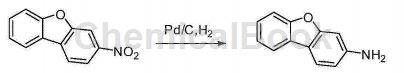3-nitrodibenzofuran (12.6g, 60mmol) was dissolved in 800ml ethyl acetate, purged with nitrogen for 5 minutes, 1000mg pd/c was added, hydrogenation started, pressurized hydrogen 60psi, when 60psi the reaction is complete when the pressure can be maintained stably for 15 minutes and no longer decreases. the reaction solution is filtered with a sand core funnel, and the filtrate is spin-dried to obtain a white solid (10.9g, 58mmol).