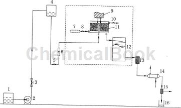 preparation of p-hydroxybenzaldehyde by hydrolysis of diazonium salt of p-aminobenzaldehyde: pump the prepared diazonium salt solution of p-aminobenzaldehyde into the high tank 4 with pump 2, and adjust the rotating speed of the rotating packed bed 11 to 600r/ min~2000r/min, adjust the opening of the discharge valve 5 of the high-level tank 4, and enter the rotating packing bed 11 at a flow rate of 0.5m3/h~3.0m3/h through the flowmeter 6. at the same time, open the heat medium air inlet valve 8. appropriately open the heat medium outlet valve 10 so that the diazonium salt solution is quickly and evenly heated to 65°c to 95°c in the rotating packed bed, undergoes a rapid hydrolysis reaction, and then enters the guide plate tower at the bottom of the rotating packed bed 11 12 carry out subsequent hydrolysis reaction.