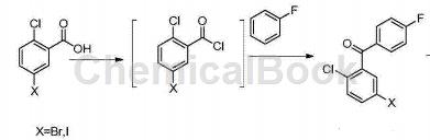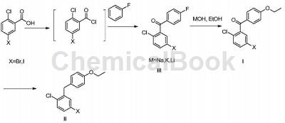 intermediate ii is an important intermediate in the synthesis of sglt2 inhibitors. (2-chloro-5-iodophenyl)(4-fluorophenyl)methanone can be used to synthesize intermediate ii.