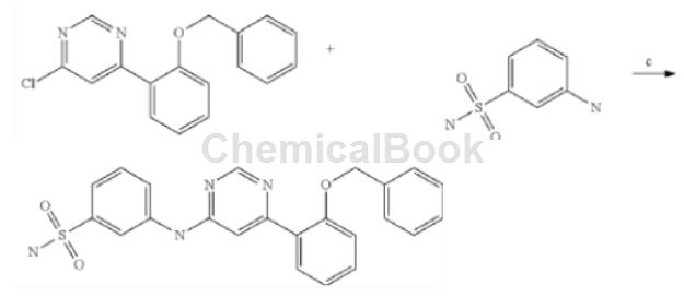 the specific steps are: add m-aminobenzenesulfonamide (4.98g, 24mmol) and 4-chloro-6-(2-benzyloxyphenyl)-pyrimidine (6.88g, 23.2mmol) in dmfa (50ml) the mixture was stirred at 80 °c. until the reaction is complete (tlc control). the reaction mixture was diluted with water (200 ml) and treated with nahco3 (4.2 g, 50 mmol). the resulting precipitate was filtered off, washed with water (2 × 200 ml), dried and purified by silica gel column chromatography (eluent chloroform-ethanol 20:1) to give [6-(2-benzyloxy-phenyl)-pyrimidine -4] -(3-methanesulfonyl-phenyl)-amine, colorless solid. yield: 8.10g (81%).