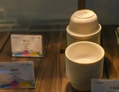 as the catering service provider of the main media center, hangzhou international expo center is bound to go all out to promote a green and low-carbon lifestyle that is deeply rooted in the hearts of the people. in the restaurant, the dining tables and landscape decorations as far as the eye can see are all made of paper-based materials, which can be recycled and reused after the game. the tableware provided to guests are all degradable and environmentally friendly materials. cutlery, forks and spoons are made of pla material. dinner plates and bowls using rice husk material, from the space layout to the plates and tableware, we truly implement and create a “waste-free” dining space.