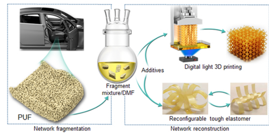 with funding from the national natural science foundation of china (grant no. 52033009) and other projects, professor xie tao’s team from the school of chemical engineering and bioengineering at zhejiang university reported a method that combines efficient degradation of commercial thermosetting polyurethane foam with high value a new chemical recycling strategy for chemical utilization can degrade polyurethane foam into polymer fragments. by designing end-capping chemistry, high-performance 3d printing resins with high added value can be obtained. this strategy has mild degradation conditions and can obtain high-value products with excellent properties without purification. it has both economic and environmental benefits. the relevant results are “chemical appreciation recycling of thermosetting polyurethane foam into high-performance 3d printing resin”