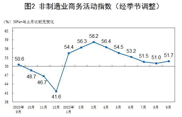 in september, the non-manufacturing business activity index was 51.7%, an increase of 0.7 percentage points from the previous month, indicating that the expansion of non-manufacturing industries has increased.