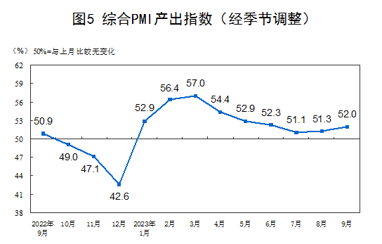 in september, the comprehensive pmi output index was 52.0%, an increase of 0.7 percentage points from the previous month, indicating that the overall expansion of production and operation activities of chinese enterprises has accelerated.