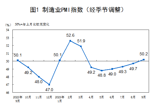 in september, the manufacturing purchasing managers index (pmi) was 50.2%, an increase of 0.5 percentage points from the previous month, returning to the expansion range.