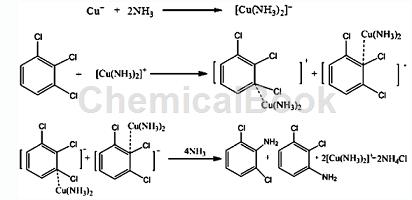 using 1,2,3-trichlorobenzene and ammonia as raw materials, metal copper ions as catalysts, quaternary ammonium salts and polyethers as phase transfer catalysts, 2,3-trichlorobenzene is prepared by ammonolysis under certain temperature and pressure conditions. chloroaniline/2,6-dichloroaniline. compared with the traditional 2,3-dichloroaniline/2,6-dichloroaniline process, the advantage of this invention is that it uses 1,2,3-trichlorobenzene, a by-product in the production process of dichlorobenzene, as raw material and performs one-step ammonialysis 2,3-dichloroaniline/2,6-dichloroaniline is obtained, which has the advantages of simple process flow, low equipment investment, high atom utilization rate, and less “three wastes”.