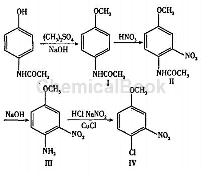 4-chloro-3-nitrobenzene is the main raw material for the synthesis of rheumatoid arthritis treatment drug iguratimod (t-164). there is no industrial production in china and it mainly relies on imports. its traditional synthesis method it is mainly produced from p-nitroanisole as raw material through a five-step reaction of reduction, acetylation, nitration, hydrolysis, and diazochlorination. however, it is not suitable due to problems such as harsh reaction conditions, source of raw materials, and low yield. for industrial production, this article improves the process with reference to other literature, choosing the common and cheap drug paracetamol (acetaminophen) as the starting material, and making it through a four-step reaction of methylation, nitration, hydrolysis, and diazotization and chlorination. it can be seen that this process route has easy sources of raw materials, few steps, and can be industrially produced.
