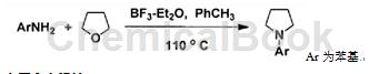 the chinese alias of 1-phenylpyrrolidine is n-phenylpyrrolidine. n-substituted five-membered nitrogen heterocyclic compounds including 1-phenylpyrrolidine are an important basic structural unit in organic compounds and often appear in biologically active natural products and drug molecules. the synthesis of n-substituted five-membered nitrogen heterocyclic compounds has therefore received widespread attention. at present, there are two common ways to synthesize such compounds: 1. under the catalysis of iron, copper, palladium and other metal compounds, it is synthesized from halogenated aromatic hydrocarbons and five-membered nitrogen heterocyclic compounds, for example, from n heterocyclic carbene palladium complex synthesis of n-aryl tetrahydropyrrole catalyzed by (s)-proline and cui -synthesis of n-aryl tetrahydropyrrole catalyzed by al alloy; 2. synthesis of n-substituted tetrahydropyrrole compounds from aromatic amines and 1,4-dihalobutane under alkaline conditions, such as in potassium carbonate aqueous solution n-substituted tetrahydropyrrole compounds were synthesized from 1,4-dibromobutane and aromatic amines. in addition, n-substituted tetrahydropyrrole may also be synthesized from aromatic amines and 1,4-butanediol or tetrahydrofuran, but the reaction generally requires that the reaction be carried out under high temperature and pressure.