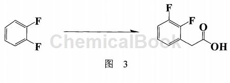 in addition, japanese patent: jp2004352724 (also applied for chinese patent: cn100378062c) (figure 3) proposes to use o-difluorobenzene as the starting material, and n-butyllithium and ethyl 2-bromoacetate in the presence of two catalysts the reaction produces ethyl 2,3-difluorophenyl acetate with a maximum yield of 77%. after saponification reaction and recrystallization are carried out, the total yield of the product is reduced to 51.92%. furthermore, the catalyst used is the reaction result has a great influence (total yield 8% ~ 77%), but this catalyst [bis(acetylacetonate-2,2′-bipyridyl nickel (ii)] is not easy to buy due to its special structure, and it is not known whether it can be repeated apply to reduce costs. preparing such effective catalysts yourself may be expensive, so it is not the best way to industrialize it.
