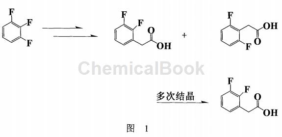 in the synthesis strategy of 2,3-difluorophenylacetic acid, due to the particularity of its structure, for example, it is planned to attach a group to the carbon next to the fluorine atom and use the traditional fulcker reaction method to obtain the product. there are many positional isomers, which is not only difficult to separate, but also the target product is not the main product. if a general nucleophilic substitution reaction is used, such as using 1,2,3-trifluorobenzene as the reaction subject (figure 1), the raw materials are expensive. in addition, the isomers produced by side reactions are difficult to remove (it must be crystallized multiple times to obtain a pure product), resulting in a low yield (<30%), which does not meet the requirements of industrialization (b.a. kowalczyk, synthesis, 1411 (1997) ).