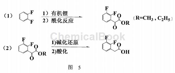 (1) at low temperature, o-difluorobenzene reacts with organic lithium to generate o-difluorophenyllithium, which then reacts with oxalate ester or chlorooxalate to generate 2,3-difluorophenyllithium. fluoroacetophenoate;