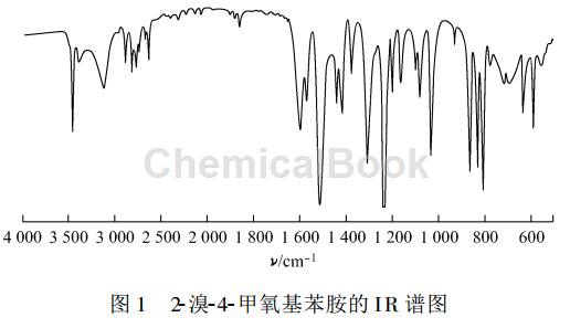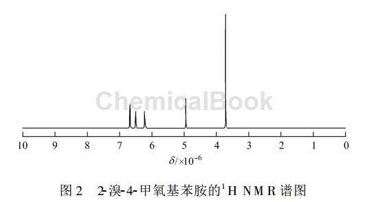 2-bromo-4-methoxyaniline, white solid, yield 98.2%, melting point 62~63℃. 1 hnmr (cdcl3)δ:3.72(s, 3h), 4.96 (s, 2h), 6.21~6.68 (m,3h); ir (kbr), ν/cm -1: 3412, 1602, 1513, 1458, 1231, 582. the ir spectrum of 2-bromo-4-methoxyaniline is shown in figure 1, and the 1 hnmr spectrum is shown in figure 2.