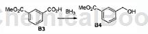 to a solution of compound monomethyl isophthalate b3 (46g, 0.3mol) in 700ml anhydrous thf, add bh3 in thf (1m, 1m, 600ml, 0.60mol) solution. the solution was then stirred at room temperature overnight. to quench the reaction, 50% aqueous acetic acid (400 ml) was slowly added. the reaction mixture was concentrated and partitioned between etoac and water. the organic phase was washed successively with 10% na2co3 aqueous solution, h2o and brine. it was dried over na2so4, filtered, concentrated under reduced pressure, and purified by silica gel chromatography (eluent: pe/etoac = 10/1) to obtain 28 g of compound b4 as a white solid (three-step yield: 54%).