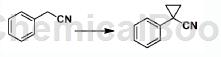step 1: under nitrogen protection, add a stirring solution of sodium hydride (60%) (16.4g) in anhydrous dmso (160ml) to thf (20ml) at 0℃ benzyl cyanide (20g). the reaction mixture was stirred at 0℃ for 30 minutes, and then a solution of ethyl bromide (29g) in anhydrous thf (20ml) was added dropwise at 0℃ under nitrogen protection. . after stirring at room temperature for 2 h, the reaction was slowly quenched with saturated ammonium chloride solution (250 ml). the reaction mixture was diluted with ethyl acetate (500 ml), and the aqueous phase was extracted with ethyl acetate (2 × 100 ml). the combined organic layers were washed with brine (250 ml) and dried over anhydrous na2so4. the solvent was evaporated under reduced pressure to obtain crude 1-phenylcyclopropanecarbonitrile (20 g) as a yellow liquid, which was used as it was for further reactions. 1h-nmr (cdcl3): δ1.48-1.55 (m, 2h), 1.66-1.73 (m, 2h), 7.30-7.40 (m, 5h).