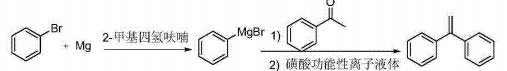 2) cn1651371a reports the synthesis of phenylmagnesium bromide grignard reagent using bromobenzene as the starting material, iodine as the initiator, and diethyl ether as the solvent at 30 to 35°c, and then dripping the diethyl ether of acetophenone the solution is hydrolyzed by sulfuric acid, recrystallized from ethyl acetate to obtain 1,1-diphenylethanol, and then refluxed and dehydrated in glacial acetic acid to obtain 1,1-diphenylethylene. the reaction process route is as follows:
