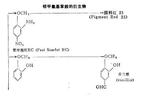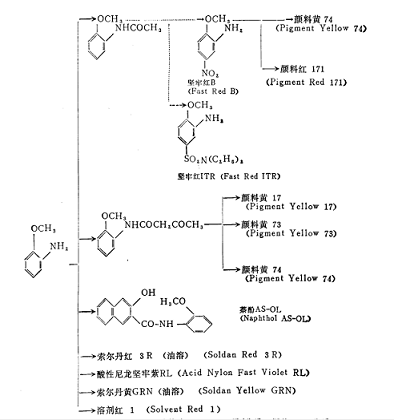 the uses of o-methoxyaniline are shown in the figure below. for dyes and pigments, the estimated demand for dyes is 50-60%, and 40-50% for pigments. the demand for these dyes and pigments in japan is relatively stable, so it is not expected that there will be significant growth in the future.