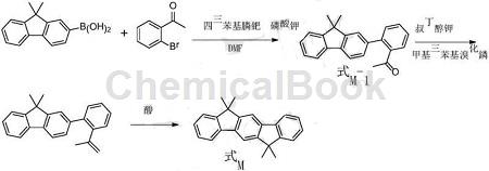 in addition, there is research to provide a preparation method for 6,6,12,12-tetramethyl-6,12-dihydroindeno[1,2-b]fluorene. the method includes: coupling reaction: 2′- bromoacetophenone and 9,9-dimethylfluorene-2-boronic acid are coupled to produce a compound represented by formula m-1; formation reaction: the compound represented by formula m-1 undergoes an addition reaction with methylmagnesium bromide, and then hydrolyzes to generate the compound represented by formula m-2; cyclization reaction: the compound represented by formula m-2 is cyclized in the presence of acid reaction, it is converted into 6,6,12,12-tetramethyl-6,12-dihydroindeno[1,2-b]fluorene represented by formula m. the above preparation method has a simple process and is easy to operate; the required raw materials are easy to obtain and low in cost; and the yield is as high as 81~91%, making it suitable for large-scale production.