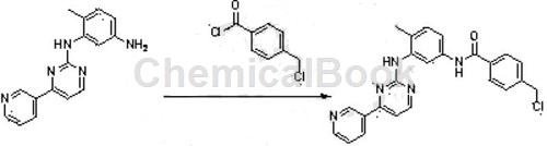add 250.0 g n-(5-amino-2-methylphenyl)-4-(3-pyridyl)-2-aminopyrimidine and 625.0 g anhydrous potassium carbonate into the 20 l reaction kettle. and 5.0 l tetrahydrofuran, slowly add 168.3 ml p-chloromethylbenzoyl chloride into the reaction system under the conditions of 0 to 10°c. after the dropwise addition is completed, the insulation reaction is completed. tlc detects that the raw material disappears. add 500.0 ml purified water, incubate for 4 hours to crystallize, filter, and dry under vacuum to obtain 4-chloromethyl-n-[4-methyl-3-[[4-(3-pyridine)-2-pyrimidine] amino]phenyl]-benzamide 332.2 g, yield 85.7%, purity 99.2%.