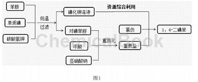 in order to simplify the reaction steps, chemists used diazotization of p-iodoaniline and then performed a displacement reaction with potassium iodide to obtain the product 1,4-diiodobenzene. since the source of p-iodoaniline is scarce, it is difficult to preserve and the price is high, it is difficult to apply it on a large scale in industry.