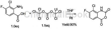1. used to prepare a poly-substituted benzoic acid compound, 6-amino-2-chloro-3-fluoro-benzoic acid. the specific steps of the preparation method are as follows: 1) at 10°c, 20g of compound 1 (2 -chloro-3-fluoro-benzoic acid) was slowly added to 60 ml of concentrated sulfuric acid. after the system was completely dissolved, the system was cooled n; when t = 0°c, fuming nitric acid was added dropwise to the system. the dropping time is 10 minutes. after the dropwise addition is completed, the system returns to room temperature and stirs for about 4 hours; lc-ms shows that the raw material reaction is complete. pour the system into 200 ml of ice water and immediately precipitate the solid. filter and wash the filter cake with ice water. after drying, prepare under medium pressure. 5.1 g of white solid (compound 2) was obtained, yield = 20%. (2) dissolve 4g of compound 2 in methanol, add raney nickel, replace the system with 0.1mp h2, and stir at room temperature for 21 hours; lcms shows that the raw material reaction is complete, the system is slightly concentrated to a small amount of solvent remaining, and the residue is treated with naoh the solution was adjusted to ph = about 10, and the system was suction-filtered through diatomaceous earth. concentrated hydrochloric acid was added dropwise to the solution until no more solid precipitated. the solution was filtered and dried to obtain 2 g of yellow solid (compound 3), yield = 58%.