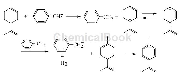 the most studied method is to produce p-cymene through catalytic dehydrogenation using t-limonene as raw material. this was studied as early as the 1920s, and he used a palladium-based catalytic system. studies have shown that t-limonene disproportionates into p-alkanes and p-cymenes. in the 1950s, metallic sodium was used as a catalyst and benzyl sodium as a cocatalyst to catalyze the dehydrogenation of monocyclic terpenes such as t-limonene to produce p-cymene. taking t-limonene as an example, the reaction process is shown in the figure.