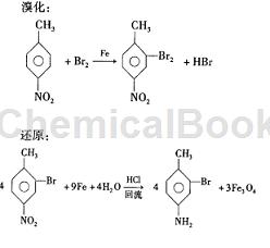 in a 100 ml three-neck flask, add 2.74g of p-nitrotoluene and 13g of iron powder. heat and dissolve. then, under vigorous stirring at 75-80°c, drop in 40g of bromine within 1-1.5 h. after the dropwise addition, the reaction was maintained at 75-80°c for 2 hours, and the yield was 75.05%.