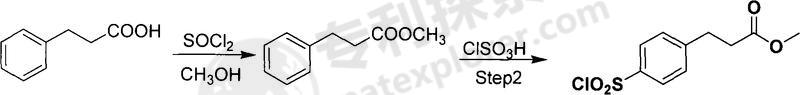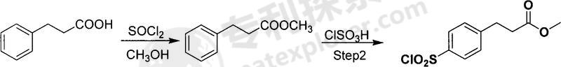 used in the synthesis of methyl p-sulfonyl chloride phenylpropionate. aromatic sulfonyl chloride is an important pharmaceutical intermediate (synthetic sulfonamide drugs) with broad application prospects. methyl phenylpropionate is used to synthesize methyl phenylpropionate of p-sulfonyl chloride. the process is simple and practical, easy to operate, the raw materials are easily available, and the cost is low. the technical solution adopted by the present invention to achieve the above object is: the synthesis method of methyl phenylpropionate of sulfonyl chloride, first esterify the phenylpropionate, then sulfonate it with chlorosulfonic acid, then hydrolyze, dry the precipitated solid, and repeat the product is crystallized and refined. the specific process is: