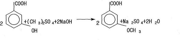 1) preparation of 3-methoxybenzoic acid: add water, solid naoh, m-hydroxybenzoic acid and dimethyl sulfate to the container for etherification reaction, then add acidic solution for acidification treatment, centrifuge and after drying treatment, 3-methoxybenzoic acid is obtained;
