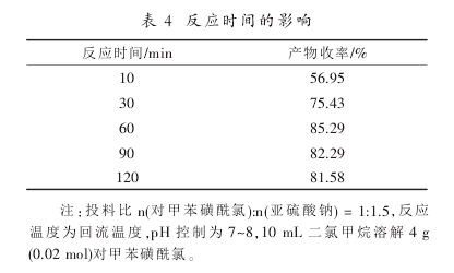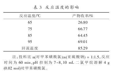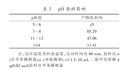 if the ph value of the sodium sulfite reaction solution is too low, it will acidify and release sulfur dioxide. if the ph value is too high, it will cause the hydrolysis of p-toluenesulfonphthalide chloride, so the appropriate ph value has a great influence on the reaction. the specific investigation results of ph are as follows: