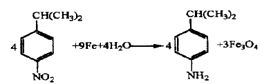 using cumene as the starting material, it is homogeneously nitrated in concentrated sulfuric acid medium to obtain a nitrocumene mixture. the reaction mixture is reduced and separated by iron powder to obtain p-isopropylaniline with a content of ≥97%. the nitration yield of this reaction was 72.4%, the reduction yield was 92.3%, the separation yield was 93.6%, and the total yield was 62.6%.
