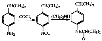isoproturon is a replacement urea herbicide with a broad spectrum of herbicides. it is mainly used in wheat, barley,in crop fields such as cotton, peanuts, corn, soybeans, peas, broad beans, etc., it has little toxicity to mammals and has obvious production-increasing effects. para-isopropylaniline is the main raw material for the synthesis of isopropuron. currently, the production of isopropylaniline at home and abroad is carried out according to the phosgene route. the synthesis method is as follows.