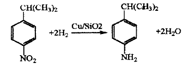 using cumene as the starting material, after nitration with mixed acid, catalytic hydrogenation is carried out under normal pressure. the hydrogenation reaction uses cu/sio2 as the catalyst, the reaction temperature is 290~310℃, the contact time is 0.31~0.34 s, the nitro compound space velocity is 0.23h-1, and the selectivity to isopropylaniline is 95 about %, the nitro conversion rate reaches over 99%.
