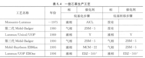 in the 1980s and 1990s, some industrial alkylation processes using zeolites came into use. the first industrial process using zeolites began in the 1980s, using medium-pore zeolite zsm-5, and the reaction was carried out in a gas-phase fixed-bed reactor (second-generation mobil-badger process). using y zeolite with large pores in the liquid phase, the deactivation is not serious. the process using y zeolite was commercialized in 1989 (lummus/unocal/uop). the year 1995. a new process using mcm-22 (mobil-raytheon ebmax) has emerged.