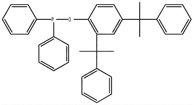 the synthesis method is to pass protective gas into the mixture of 2,4-dicumylphenol and the solvent, and dropwise add the mixture of diphenylphosphine chloride and the solvent. after the addition is completed, the reaction is kept warm; after the reaction is completed, stop pass protective gas, cool n, and evaporate the solvent under normal pressure or reduced pressure to obtain a light yellow viscous liquid; then add a crystallizer to the viscous liquid, and then add an appropriate amount of activated carbon, keep it warm for 30 minutes under reflux, filter while it is hot, and cool the filtrate finally, a white solid precipitates, which is filtered and dried to obtain the product.