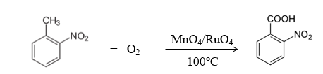 it is prepared by oxidation using o-nitrotoluene as the starting material. in the high-pressure reaction kettle, add methanol solvent, o-nitrotoluene and catalyst mno4/ruo4, introduce oxygen under full stirring, and heat at 100~150℃, 0.1 react at -2mpa for 5-15 hours. after the reaction is completed, cool to room temperature, release the pressure, filter the catalyst, extract with ether-water, wash the organic phase with water, distill the solvent to recover the solvent, and obtain o-nitrobenzoic acid with a yield of 89.1%. the purity is over 96%. the filtered catalyst can be recycled. the reaction route is as follows.
