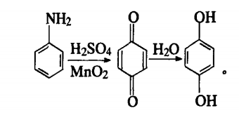 aniline oxidation method is a traditional synthesis process. it has a history of nearly 80 years. at present, some manufacturers in my country still use this method to produce 1,4-benzenediol. the reaction process of this method is: step 1. under acidic conditions in the presence of sulfuric acid, use manganese dioxide or sodium dichromate to oxidize aniline into p-benzoquinone; in the second step, p-benzoquinone is used under acidic conditions. use iron powder to reduce it to 1,4-benzenediol; step 3. after filtration, crystallization and decolorization, the finished product is obtained. the reaction equation is as follows: