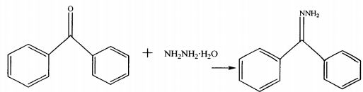 method 1: prepared by refluxing anhydrous hydrazine and benzophenone in anhydrous ethanol for 5 to 7 hours. however, the anhydrous hydrazine used in this method is a highly self-igniting and self-exploding reagent, which is extremely unsafe and is not available on the market. the preparation of anhydrous hydrazine is to use hydrazine hydrate with a volume concentration of 80 to 85% and potassium hydroxide to reflux and dehydrate and then distill to obtain anhydrous hydrazine with a water content of ≤2.0%. this method not only consumes a large amount of potassium hydroxide, but also the distillation device must be strictly sealed, otherwise the anhydrous hydrazine vapor escaping during the distillation process will often spontaneously ignite, which is extremely dangerous. therefore, this method cannot be industrialized.