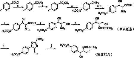 domestic companies mostly use the p-methyl sulfonyl benzaldehyde route to produce thiamphenicol, while fluthiamphenicol is generally produced from the intermediate methionine. synthesis of sulfonomycin: