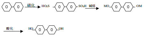 biphenyl is obtained by sulfonation, alkali fusion and acidification. the reaction formula is as follows: