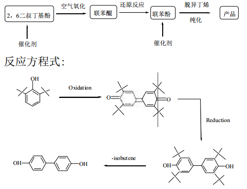 uses 2,6-di-tert-butylphenol as raw material. the product is synthesized through a three-step process of oxidation, reduction and deisobutylene, and its product purity reaches electronic level (>99.5%). reaction flow chart: