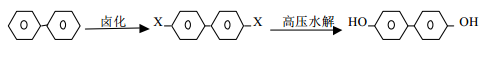 biphenyl is obtained through halogenation and hydrolysis. the reaction formula is as follows: